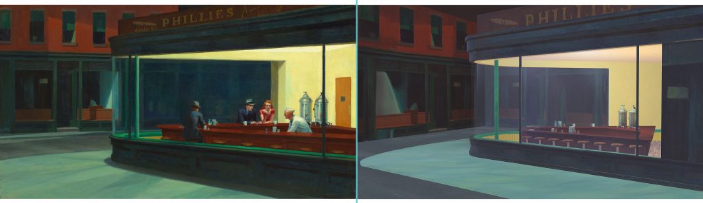 En las últimas semanas han aparecido muchas obras de arte tratadas para definir la situación de confinamiento, pero las de Hopper son originales. No digo ya si trucamos un poco alguna de las suyas…
